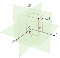 A point can be defined in the cartesian coordinate system with 3 real numbers:. The x,y,z are usually in a plane so z is constant. The x,y,z are coordinates while t is data. The coordinate is negative if the point is behind the coordinate system.
